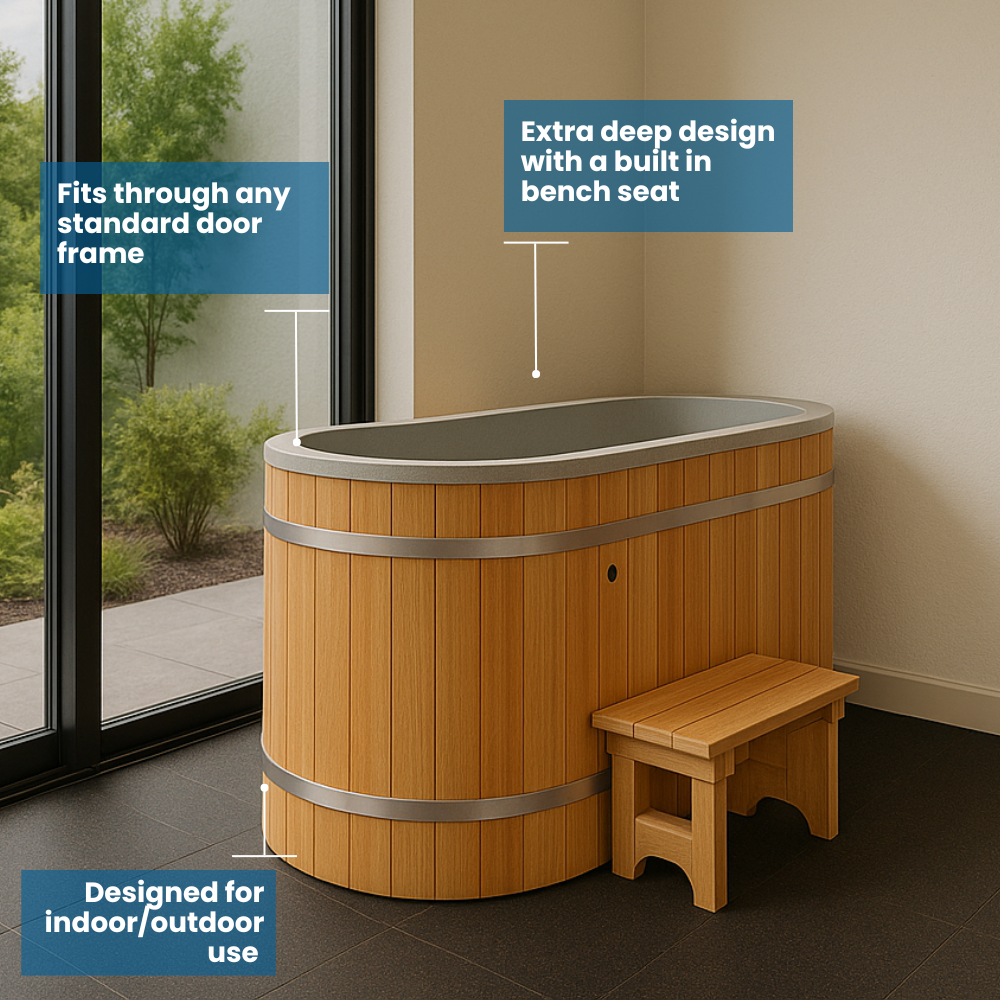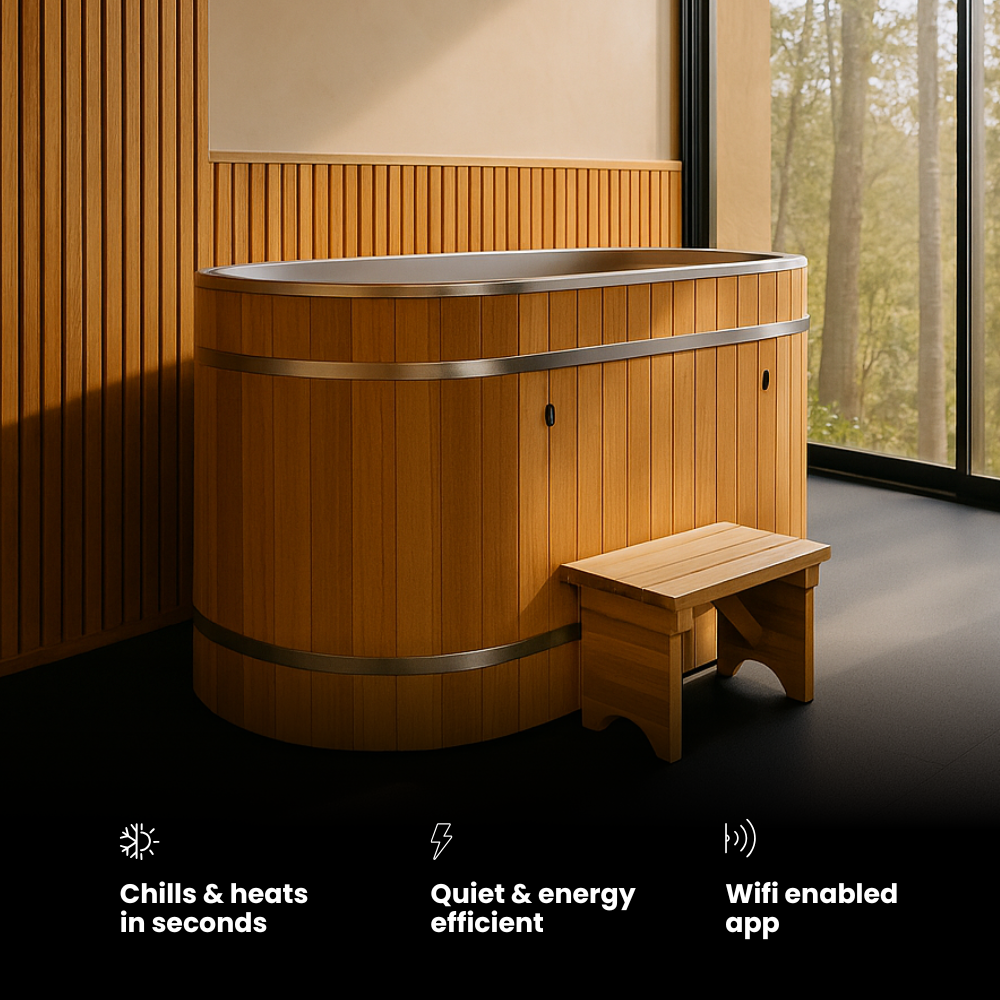 Refresh your recovery routine with a slim-profile cold plunge that delivers powerful performance in a space-saving design. This composite barrel tub combines the timeless look of cedar with modern cooling, filtration, and sanitation systems keeping your water crystal clear and ice-cold without the need for manual ice. Perfect for indoor or outdoor use, it’s quick to set up with simple hose-fill functionality and plug-and-play installation.